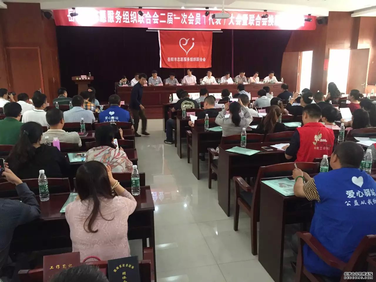 岳阳市志愿者服务组织联合会二届一次会员代表大会暨联合会换届选举大会胜利召开!会议选举产生了新的联合会会长,副会长、秘书长、副秘书长等!祝愿岳阳志愿者活动蓬勃发展,,“奉献、友爱、互助、进步的志愿者精神在社会中发扬光大”。感谢现场捐赠爱心的企业家!只要人人都献出一点爱,世界将充满阳光!快乐志愿 随手公益!