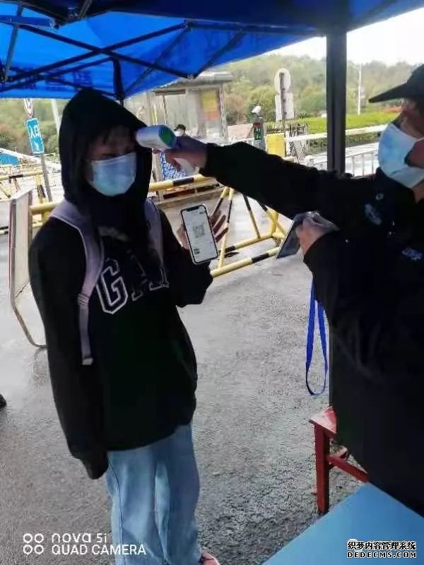 9时许,一位骑着电动车的女士停在大门口,唐伟珍马上上前了解该女士到访的缘由,随后,提醒对方下车登记并测温。唐伟珍说,光有这一步还远远不够。只见她指着大门口贴着的2个二维码,引导对方逐个扫码并确认。唐伟珍说,每个外来人员除了要登记测温后,必须扫这2个码,没有问题后才能放行进入。“通过查看健康码、行程码,就能知道对方是不是安全的,有没有做核酸采样,只有安全的外来人员,我们才能放行。”唐伟珍说。