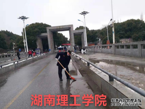 图为:岳阳市职业技术学院保安员清理积雪