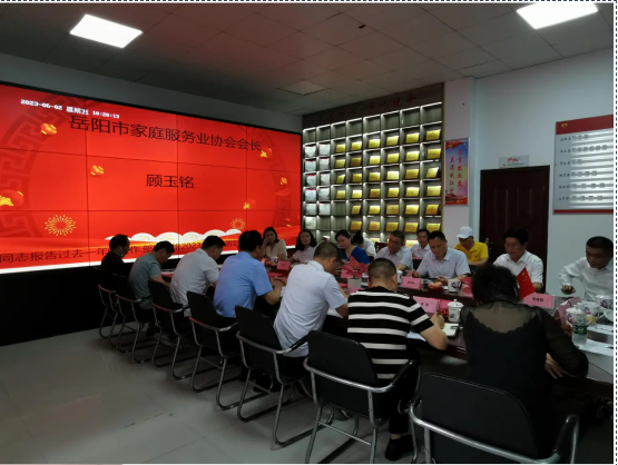 会议第二项,由岳阳市家庭服务业协会会长顾玉铭同志报告过去一年的工作完成情况,并部署安排 2023 年的工作任务。