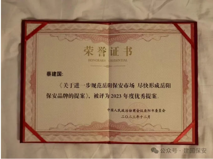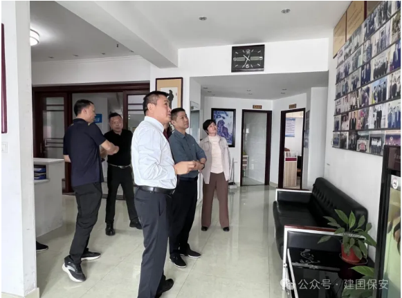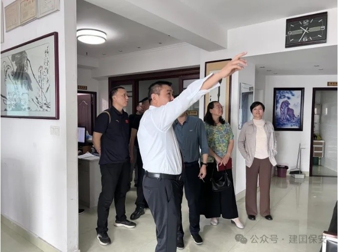 在考察过程中,湖南建囯保安公司董事长蔡建国向高校保卫处领导介绍了公司的基本情况、发展历程以及在校园安全保卫方面的专业能力和丰富经验,并向各位领导汇报了近几年来公司取得的荣誉,2020年获得公安部颁发的“全国抗击疫情先进集体”、获得湖南省保安协会颁发的“副会长单位”,2022年获得湖南省公安厅、湖南省工会、共青团湖南省委、湖南妇女联合会联合颁发的“首届湖南省先进保安服务公司”,2023年获得湖南省人力资源和社会保障厅颁发的“湖南省劳动人事争议金牌调解组织”,2024年获得湖南省公安厅、湖南省保安协会颁发的“湖南省保安服务行业2023年度警保联运动先进单位”,湖南理工学院安保项目获得湖南省公安厅、湖南省保安协会颁发的“湖南省保安服务行业2023年度示范安保项目”等。作为岳阳市政协委员近几年来如何为岳阳市的经济建设和保安行业的发展建言献策贡献力量,之后带领各位领导参观了公司企业文化走廊、荣誉墙等场地让考察组成员亲身感受了公司的企业文化素养专业化安保的氛围。