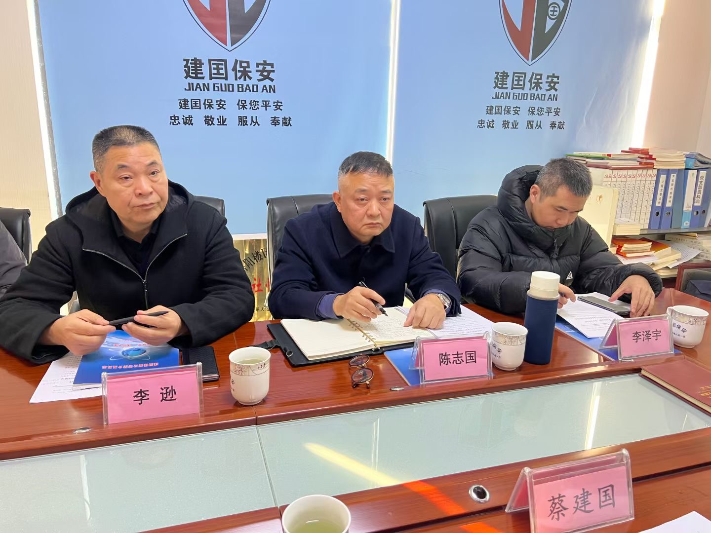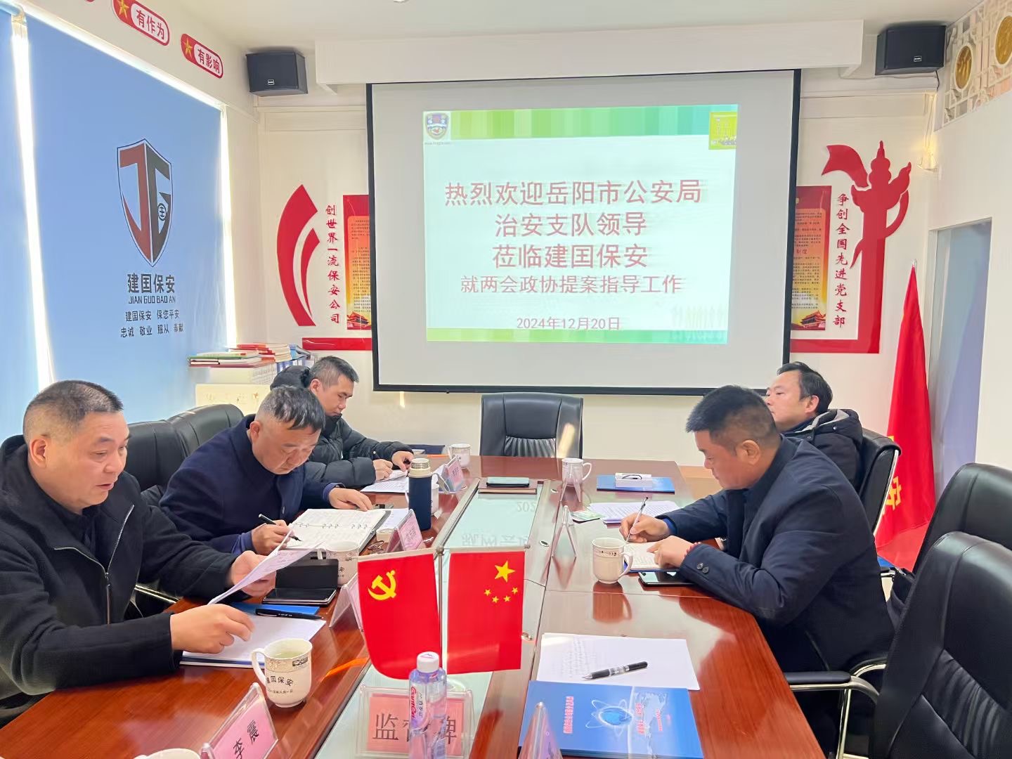 热烈欢迎岳阳市公安局治安管理支队领导莅临建囯保安就两会政协提案指导工作!