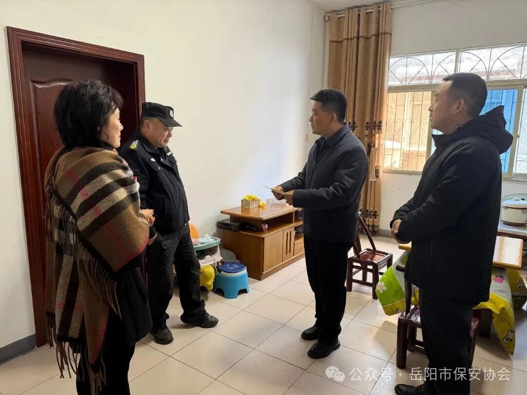 在新春佳节来临之际,为传递对一线保安员的关怀与敬意,1月21日下午,湖南省公安厅、省保安协会慰问组一行奔赴岳阳,开展困难保安员慰问活动,为坚守岗位的保安员们送上新春祝福与温暖关怀。